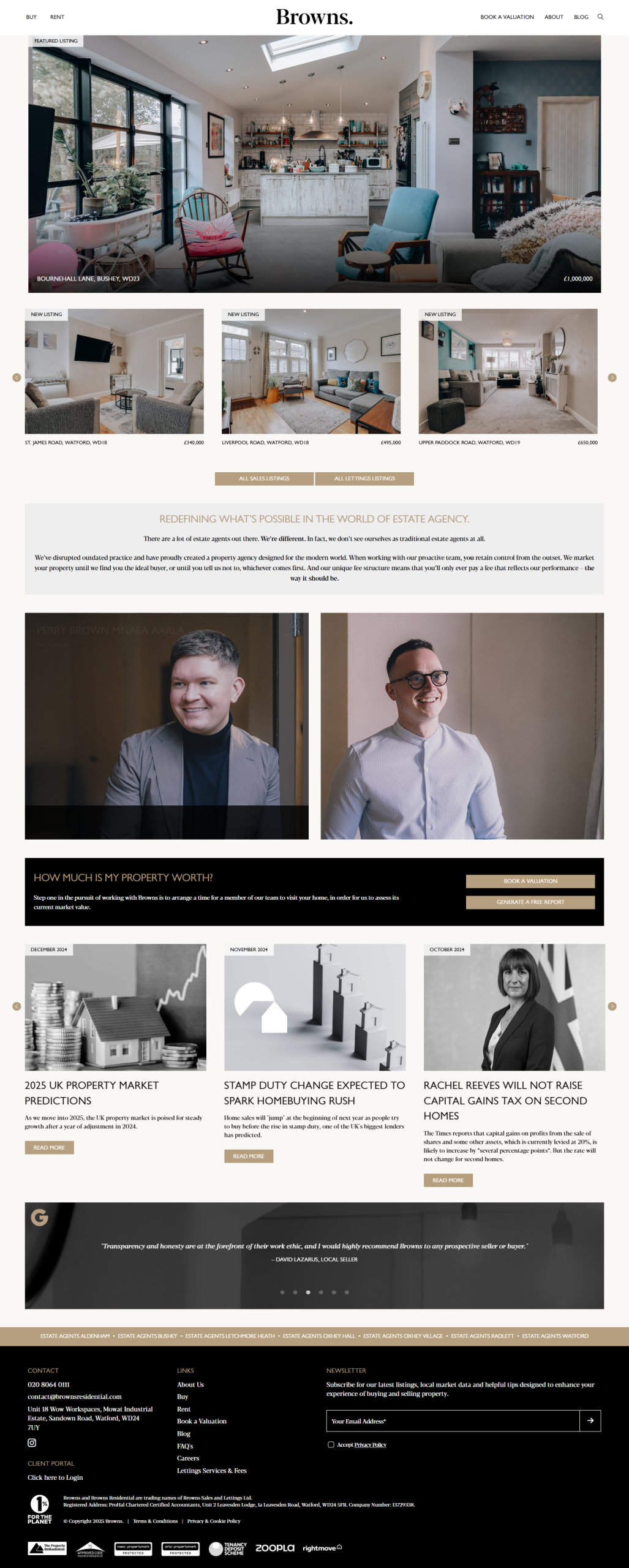 As a brand-new estate agency, Browns Residential needed a complete online presence to compete. Without a site, they couldn’t showcase properties, link with their CRM, or allow clients to book valuations and viewings online.